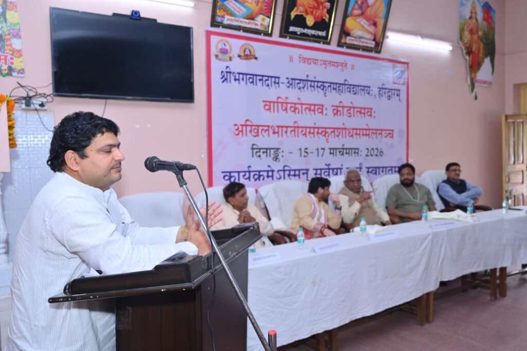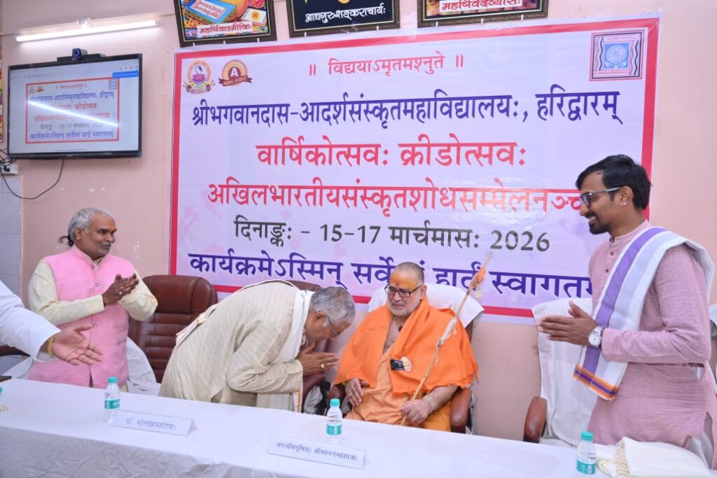 हरिद्वार : श्री भगवानदास आदर्श संस्कृत महाविद्यालय, हरिद्वार में दिनाङ्क 15 मार्च 2026 से त्रिदिवसीय वार्षिकोत्सव के समापनसमारोह का आज दिनाङ्क 17/03/2026 को आयोजन किया गया। समापन समारोह के अन्तर्गत अखिल भारतीय संस्कृत शोध सम्मेलन का आयोजन किया गया। सम्मेलन का विषय श्रीशङ्कराचार्याणां शास्त्रीया दृष्टिः, तेषां भारतीयसंस्कृतौ प्रभावश्च खा गया।