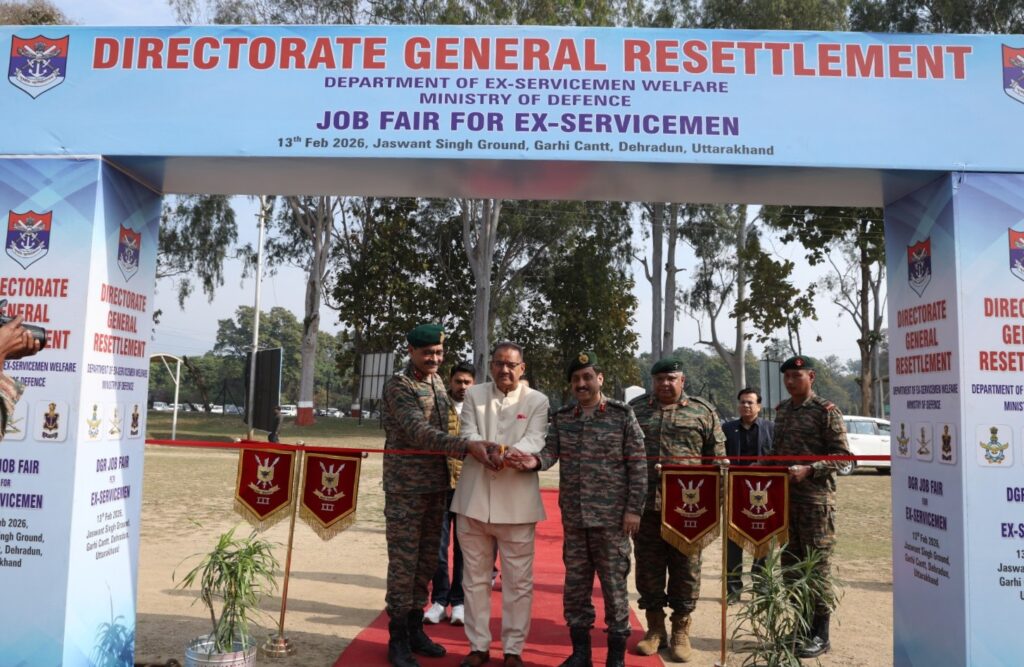 देहरादून I सैनिकों के पुनर्वास से संबंधित मामलों के लिए रक्षा मंत्रालय के पूर्व सैनिक कल्याण विभाग, पुनर्वास महानिदेशालय (DGR) द्वारा 13 फरवरी 2026 को गढ़ी कैंट, देहरादून (उत्तराखंड) में भारतीय सशस्त्र बलों के पूर्व सैनिकों के लिए रोजगार मेला आयोजित किया गया। इस कार्यक्रम का उद्देश्य सेवा निवृत्त एवं सेवानिवृत्त होने वाले सैनिकों और कॉर्पोरेट संस्थाओं को एक मंच पर साथ लाना था।माननीय श्री गणेश जोशी, उत्तराखंड राज्य के पूर्व सैनिक कल्याण मंत्री, मेजर जनरल एसबीके सिंह, एस.एम, महानिदेशक (पुनर्वास) और श्री गौरव लाम्बा, निदेशक, भारतीय उद्योग परिसंघ (सीआईआई) ने पूर्व सैनिक और कॉर्पोरेट प्रतिनिधि इस कार्यक्रम में सम्मिलित हुए।